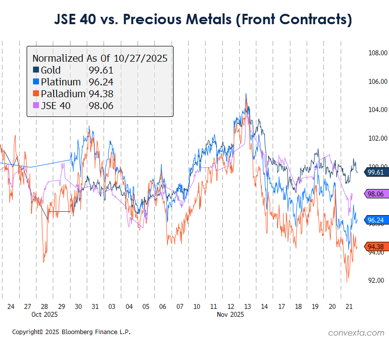 Asia Copper Week (Nov 25–27), LME positioning – sets the tone for copper and the broader base-metals complex that underpins JSE40.