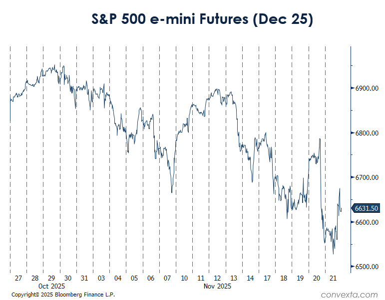 Markets had a tantrum last week, selling off hard despite fundamentals moving in favour of risk assets. Earnings remained firm, labour-market cooling continued, and inflation data turned softer all reinforcing my non-consensus call for a December Fed cut. Yet global stock markets continued their sell-off in a catalyst-free, flow-driven shakeout that said more about positioning stress than macro reality.